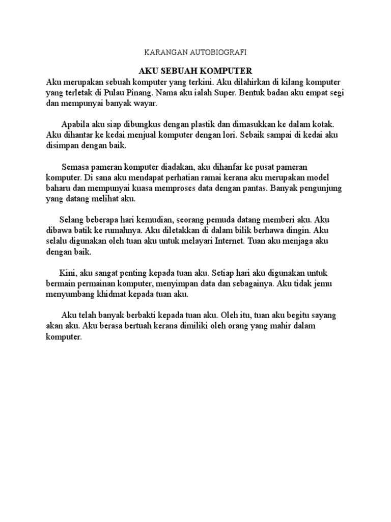 Aku dihasilkan di negara matahari terbit. Contoh karangan 1aku sebuah komputer riba. Baca contoh karangan autobiografi.